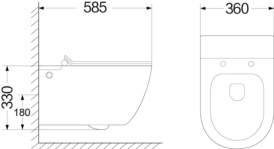 • Прилегание унитаза к стене: