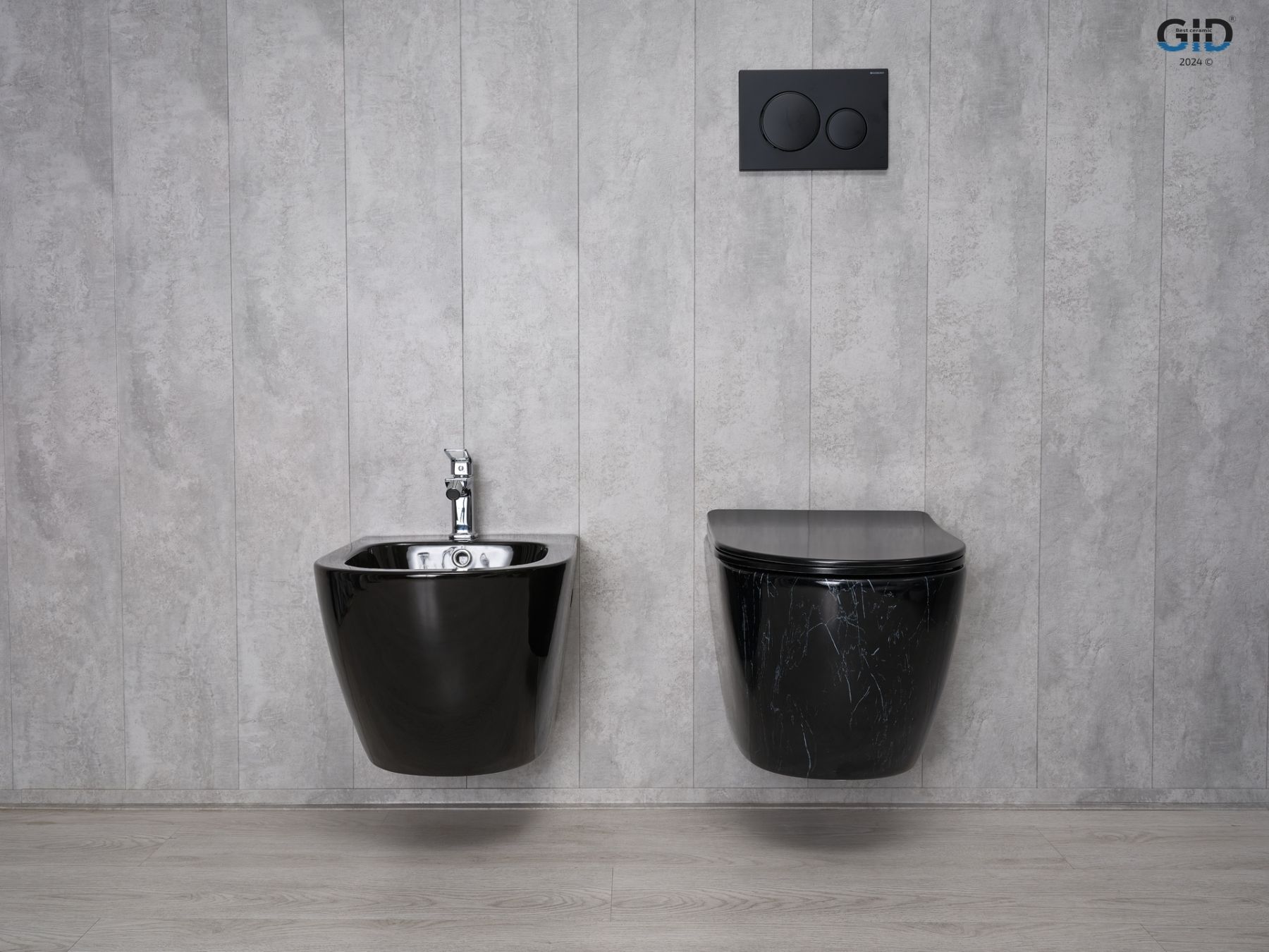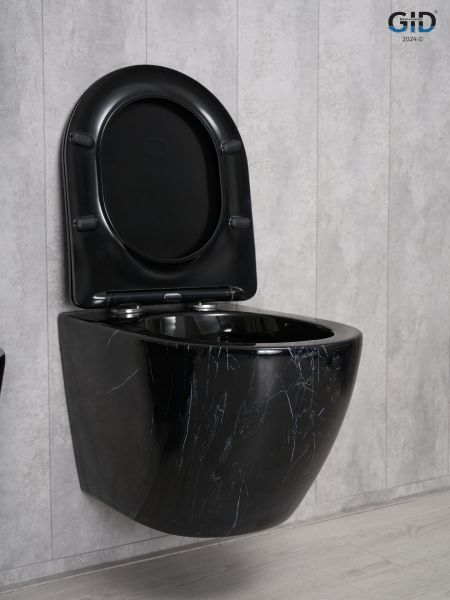 Convexo — коллекция округлых унитазов и биде, идеально подходящих для современных интерьеров. Испанское качество и соответствие европейским нормам — основные черты серии. Подвесной безободковый унитаз GiD Bs2198 - модель с горизонтальным выпуском выполнена из мелкопористой керамики в черном глянцевом цвете имитирующим неповторимые узоры камня. Оснащена быстросъёмным сиденьем из дюропласта с функцией микролифта, обеспечивающей плавное и бесшумное опускание крышки. Благодаря антигрязевому покрытию и воронкообразной овальной чаше унитаз обеспечивает высокий уровень гигиены и легкость ухода. Комплект: подвесной унитаз GiD Bs2198 с креплениями для скрытого монтажа; сиденье с креплениями.