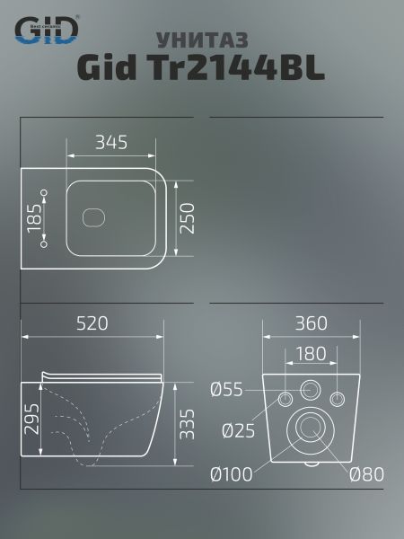 Унитаз подвесной Gid Tr2144BL 62224Y черная глянцевая 52x36x33.5 купить
