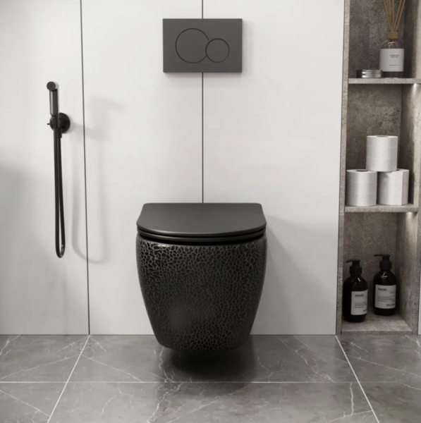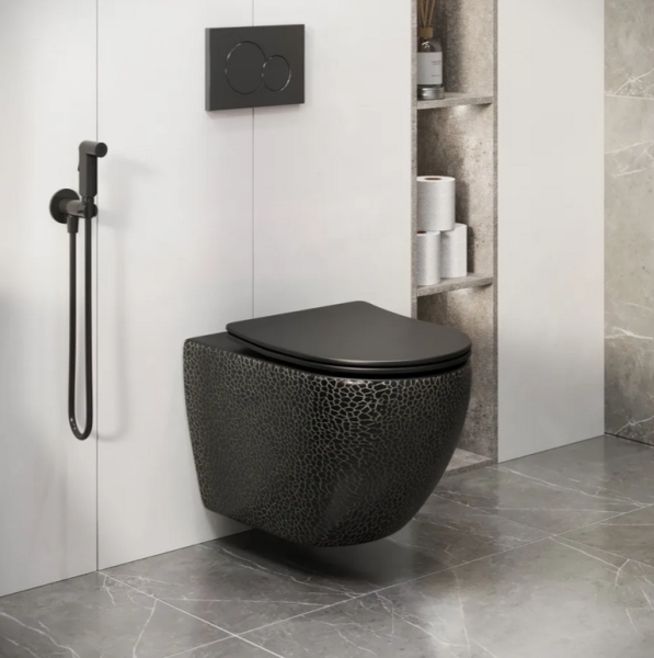 Унитаз подвесной Grossman безободковый чёрный с текстурой кожи крокодила GR-4455BBLS