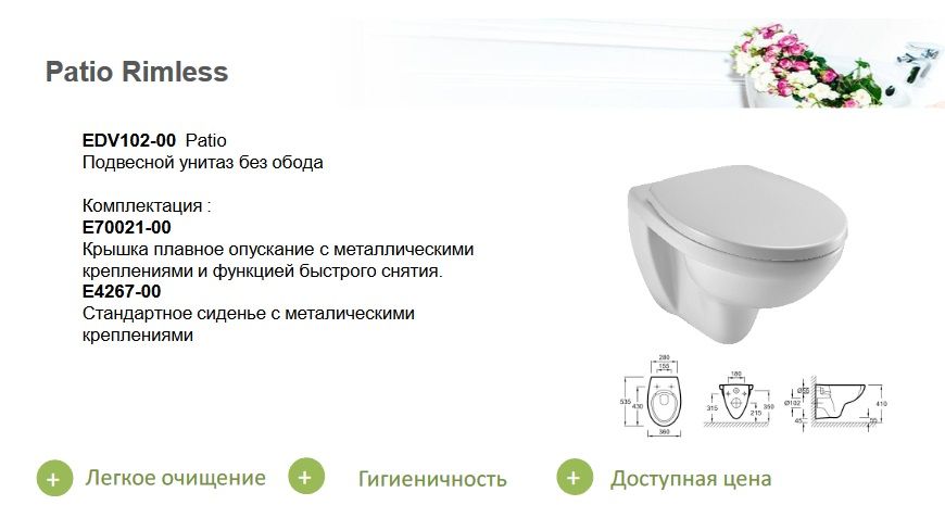 Унитаз подвесной Jacob Delafon PATIO EDV102-00КОЛЛЕКЦИЯ :PATIO