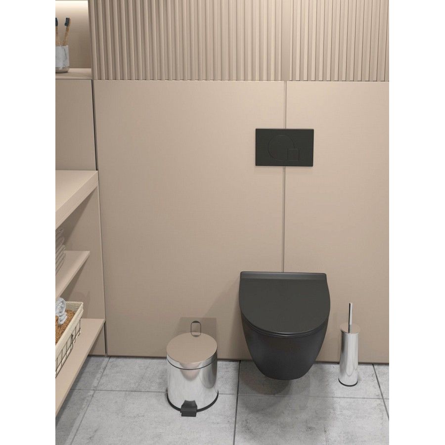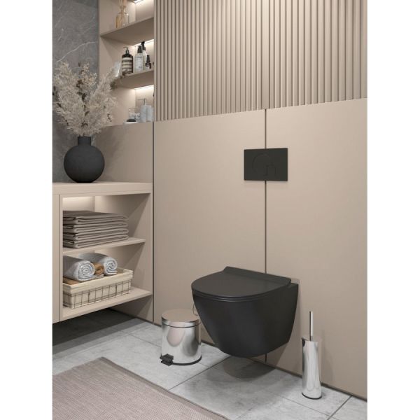 Представляем вашему вниманию подвесной унитаз Maretti Elena EA10PBM93-560 в элегантном черном цвете. Он изготовлен из качественного санфарфора и отличается отсутствием ободка, что упрощает его гигиеническую очистку и позволяет избежать скопление загрязнений. Вихревая система смыва обеспечивает эффективное устранение загрязнений, а антивсплесковая система предотвращает появление неприятных брызг. Антигрязевое покрытие на поверхности унитаза помогает сохранить первозданный вид и упрощает уход за изделием. Данный унитаз комплектуется быстросъемным сиденьем с функцией микролифта, обеспечивающей плавное опускание сиденья без ударов. Межосевое расстояние для крепежных шпилек инсталляции составляет 18 сантиметров, что соответствует стандартам большинства инсталляций. Гарантия на этот товар составляет 10 лет, подтверждая его высокое качество и долговечность. Подвесной унитаз Maretti Elena станет отличным выбором для тех, кто ценит стиль, комфорт и гигиену.