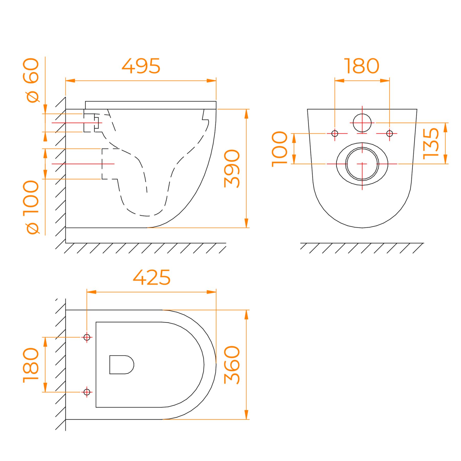 - Подключение слива: горизонтальное (в стену);