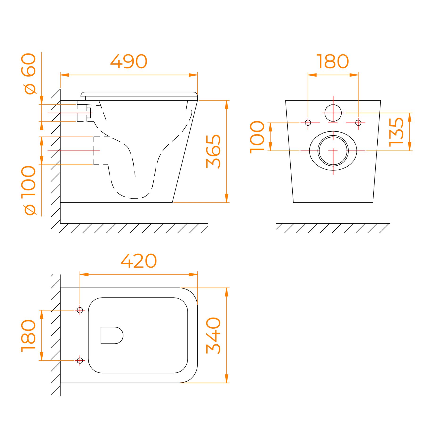 Подвод воды:определяется системой инсталляции