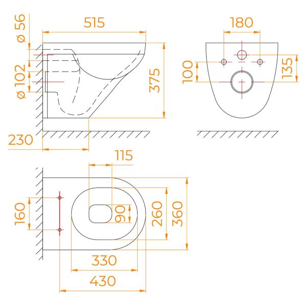 • Подвесная чаша унитаза выполнена из санфаянс;