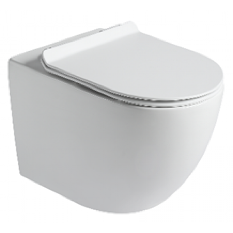 Подвесной унитаз SantiLine безободковый, сиденье микролифт, цвет белый матовый, SL-5002MW