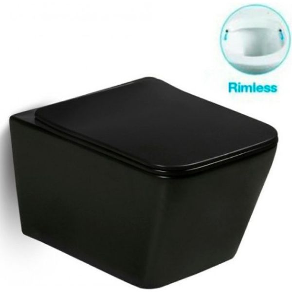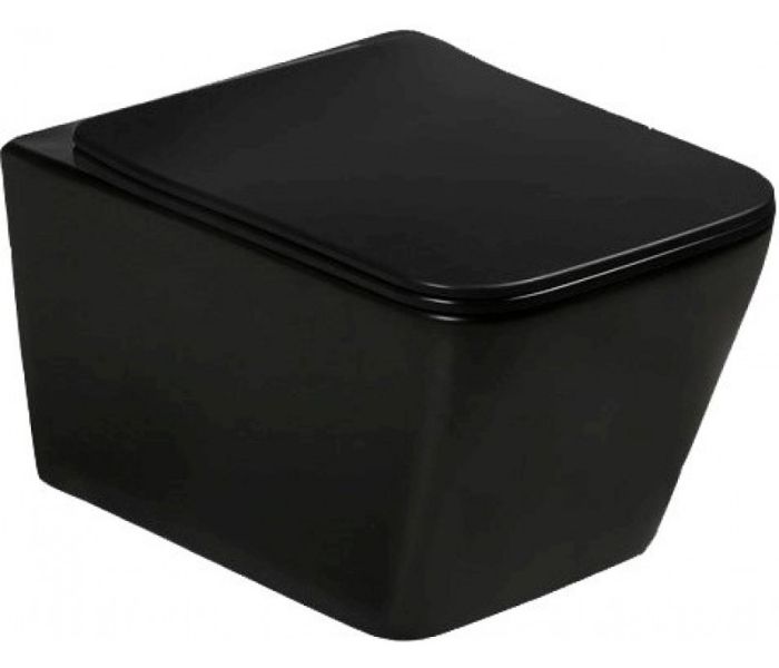Безободковый подвесной унитаз SantiLine, сиденье микролифт, цвет черный матовый, SL-5004MB