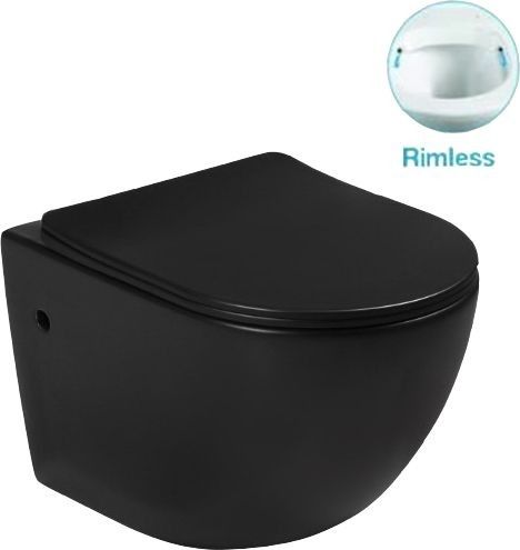 Безободковый подвесной унитаз SantiLine, сиденье микролифт, цвет черный матовый, SL-5018MB