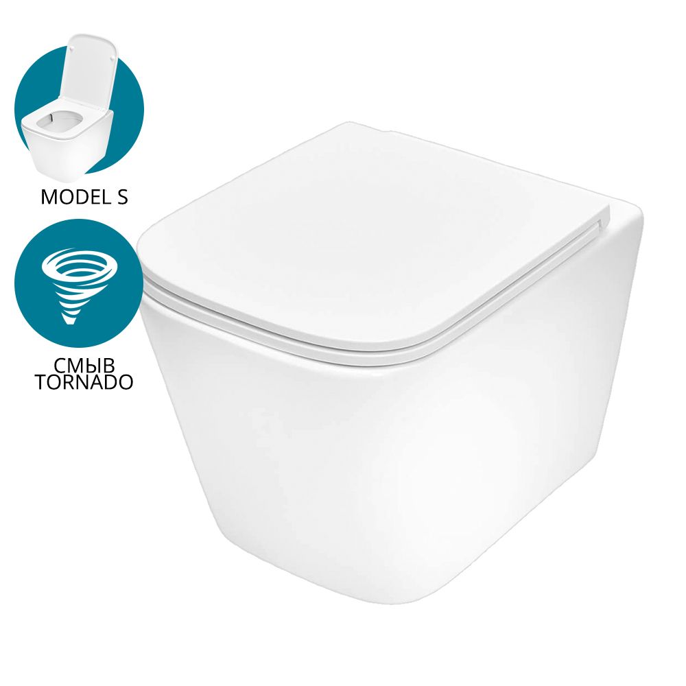 Строгая геометричная форма, тяготеющая к прямым углам, хорошо сочетается с другими прямоугольными элементами интерьера: панелями смыва, плиткой, окнами или дверью. Благодаря безободковой конструкции в чаше нет труднодоступных мест. Это облегчает уход и позволяет отказаться от агрессивной бытовой химии. А для того чтобы вода не разбрызгивалась во время смыва, унитаз оснащен технологией Tornado flush, которая направляет воду по заданной траектории в виде спирали.