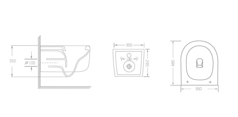 • Прилегание унитаза к стене: