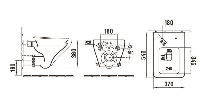 • Прилегание унитаза к стене: