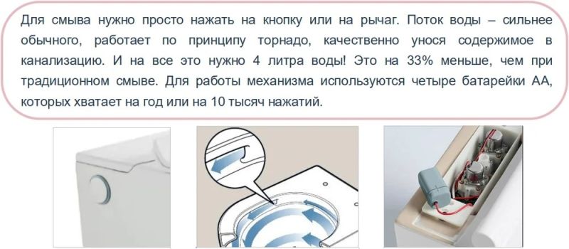 - Оснащение: импульсная система смыва воды