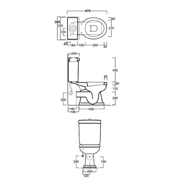 Размеры чаши унитаза (ШхВхД): 365x400x475 см.