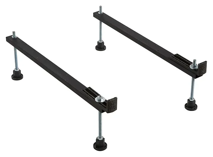 Ножки для акриловой ванны Aquanet - универсальный способ установки прямоугольных моделей из акрила. Просты в сборке. Допускают регулировку по высоте до 8 см. Крепятся к днищу ванны в местах установки закладных из МДФ-плиты. В комплекте предусмотрены упоры для монтажа фронтальной панели. Являются экономичной альтернативой сварного каркаса для ванн. Рекомендуются для установки небольших по размеру прямоугольных акриловых ванн эконом-класса.