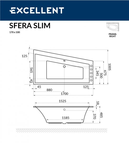 Ванна акриловая Excellent Sfera Slim 170 х 100 см правая. Ванна от Польского производителя отличающаяся высоким качеством и выдающимся внешним видом эфектно впишется в любую ванную комнату. Долгий срок службы подтверждается высоким гарантийным сроком ванн Excellent