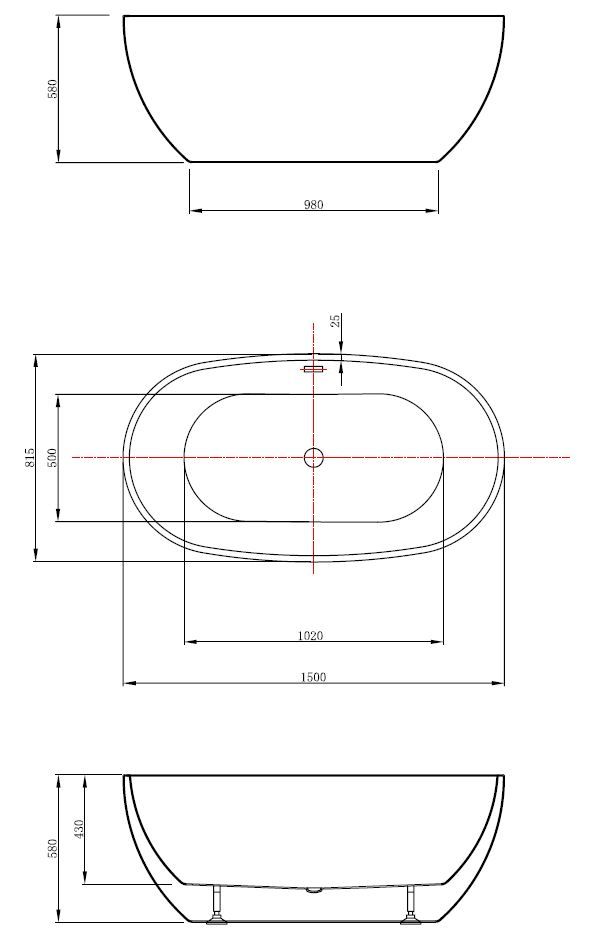 Ванна акриловая Vincea VBT-408-1500, 1500*815*580, цвет белый, щелевой перелив