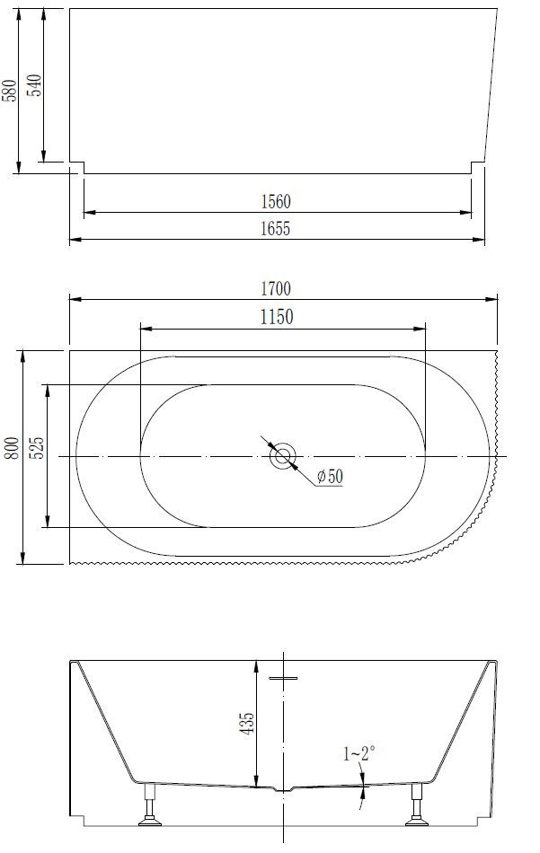 Ванна акриловая Vincea VBT-428-1700L, 1700*800*580, цвет белый, левая, щелевой перелив купить