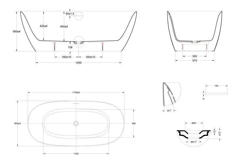 Ванна акриловая Vincea VBT-701-1700MW, цвет белый матовый, щелевой перелив