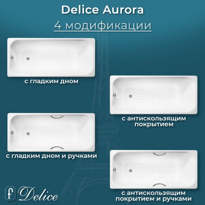 Ванна чугунная Delice Aurora DLR230606-AS 170x75 с антискользящим покрытием купить