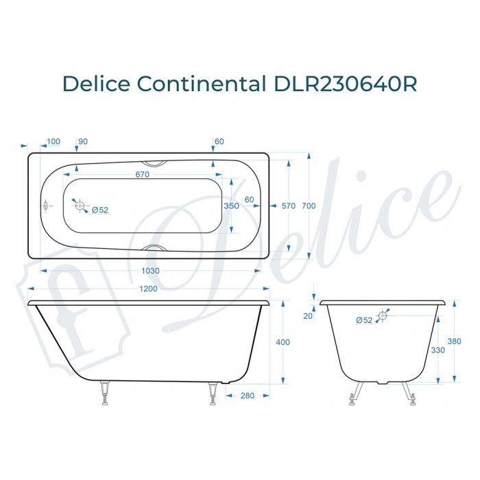 Ванна чугунная Delice Continental 120х70 с отверстиями под ручки купить