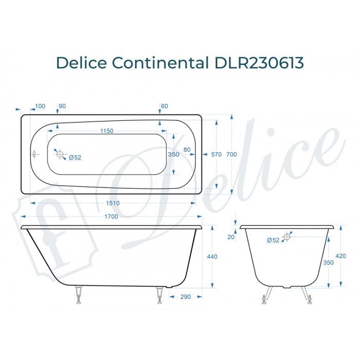 Ванна чугунная Delice Continental DLR230613 170x70