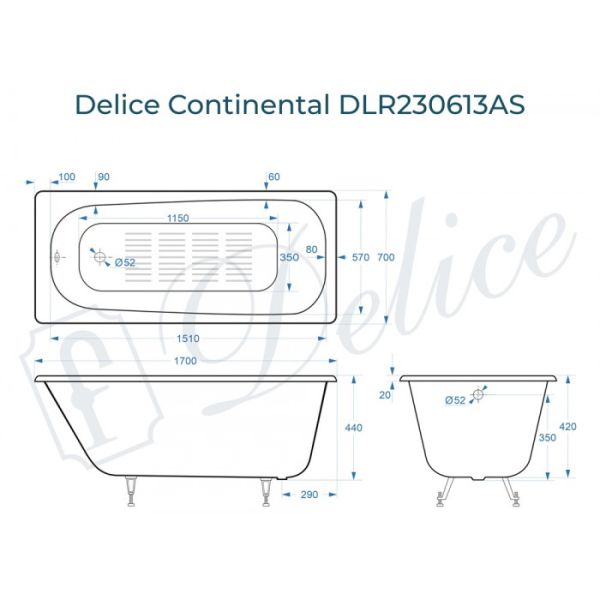Ванна чугунная Delice Continental DLR230613-AS 170x70 с антискользящим покрытием
