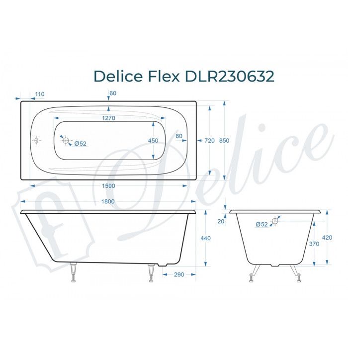 Ванна чугунная Delice Flex DLR230632 180х85