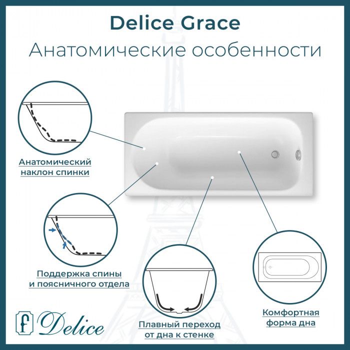 Ванна чугунная Delice Grace DLR230643R 170х70 с отверстиями под ручки купить