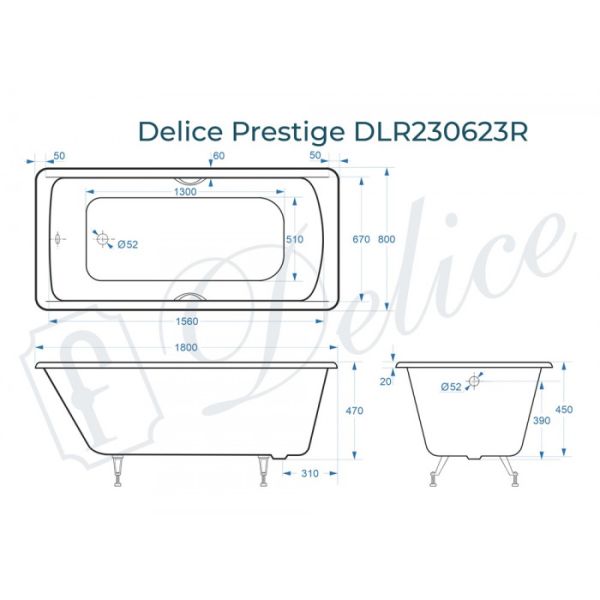 Ванна чугунная Delice Prestige DLR230623R 180х80 с отверстиями под ручки купить