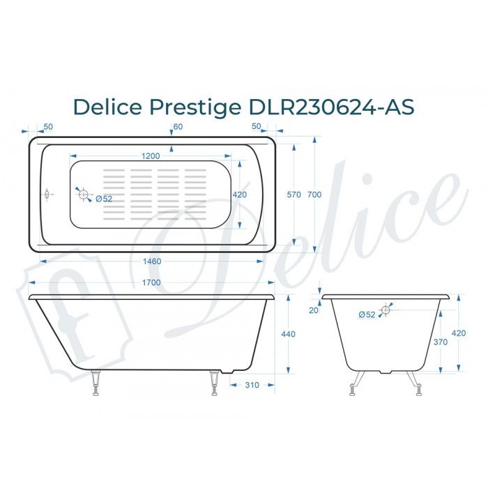 Ванна чугунная Delice Prestige DLR230624-AS 170х70 с антискользящим покрытием купить