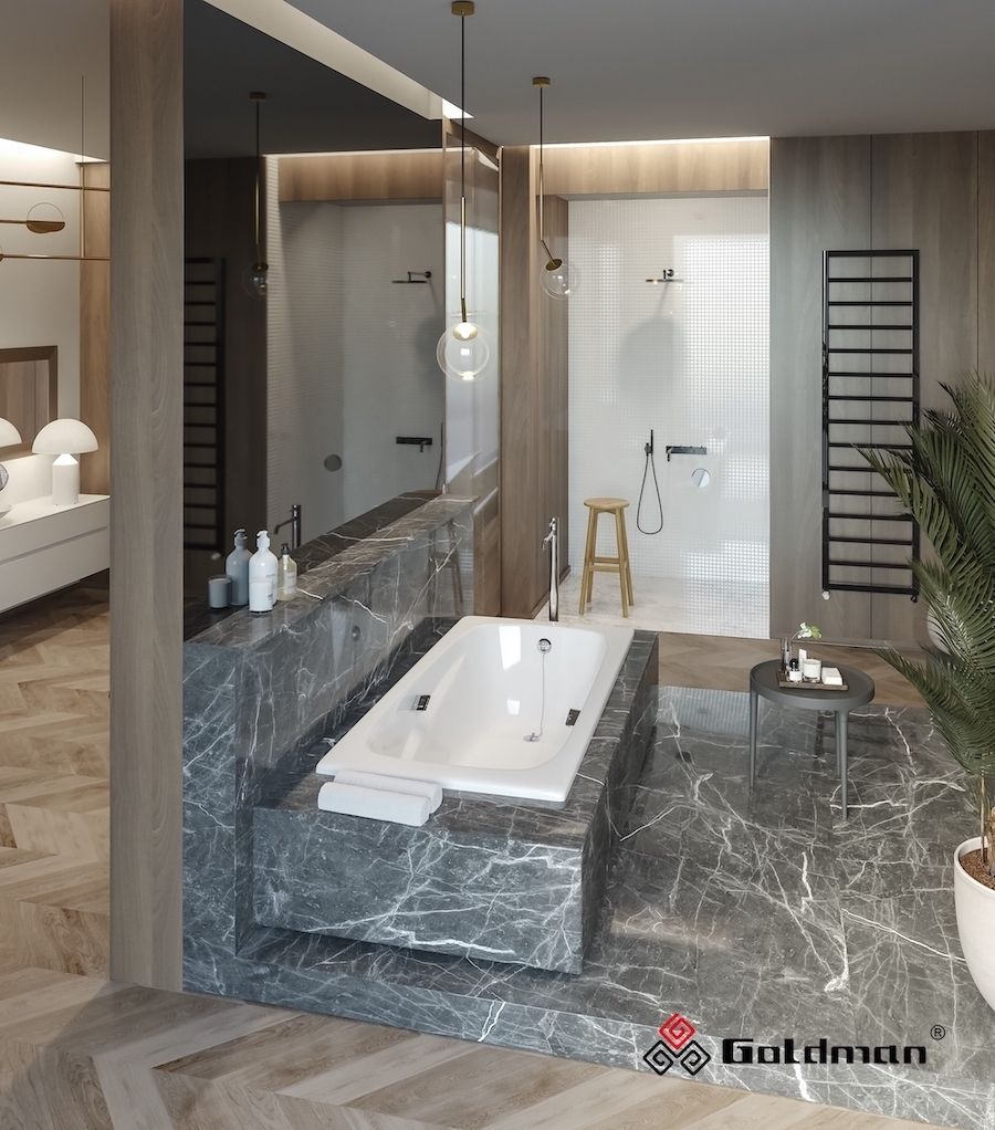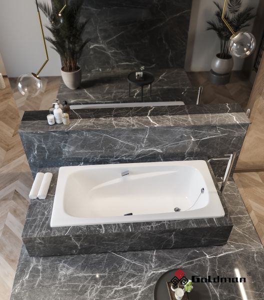 Чугунная ванна Goldman Art станет прекрасным дополнением при обустройстве ванной комнаты большого размера. Нестандартная ширина сантиметров и необычный внутренний дизайн, выраженный в плавных линиях, нисходящих к спинке ванны, придают элегантность, а ручки необычной квадратной формы дополнительный шарм.