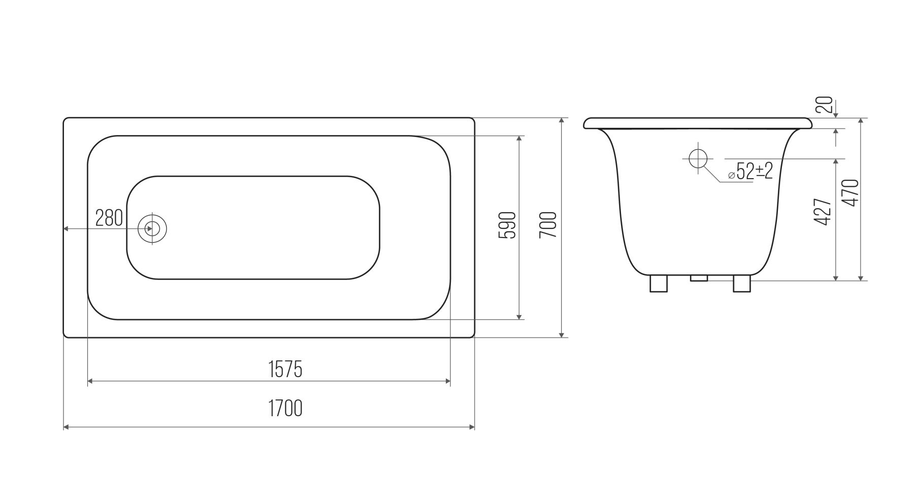 Стандартные размеры, см:170x70