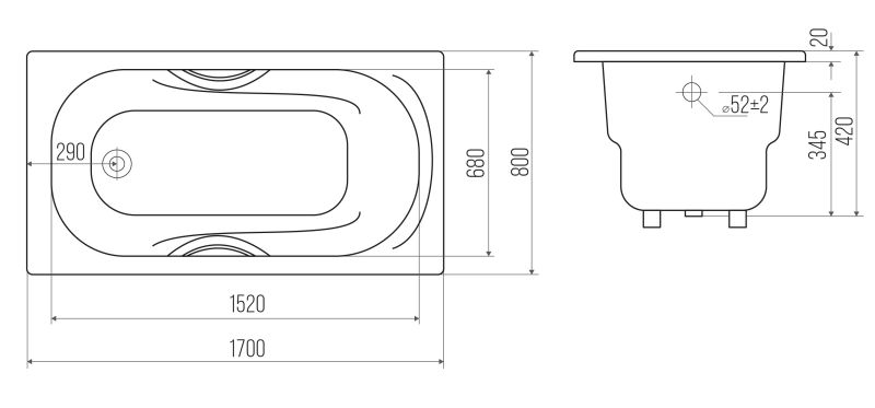 Ванна чугунная Goldman Nova NV17080 170x80см с ножками