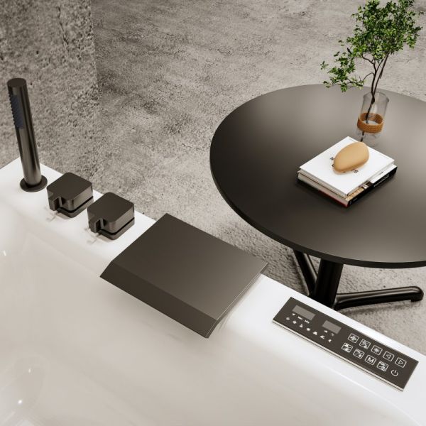 Гидромассажная ванна Orans в габаритных размерах 180x80 см.Изготовлена из цельного акрилового листа Lucite с армировкой стекловолокном для жесткости и стабильности чаши. С завода устанавливается на сварной каркас из нержавеющей стали SUS 304.В комплектацию входит вытяжной ручной душ и смеситель с керамическим картриджем, а для хранения ванных принадлежностей установлена полочка с держателем для полотенца. Также важной  отличительной особенностью можно отметить наличие двух изливов, первый в зоне подголовника и второй в зоне смесителя каскадной конфигурации. Цвет всех перечисленных элементов– оружейная сталь. В стенки ванны интегрированы 6 спинных гидромассажных форсунки и 4 боковых, оснащенные подсветкой. Дно ванны с выраженной анатомической формой и укомплектовано шестью аэромассажными форсунками.Для управления освещением, музыкой и интенсивностью массажей, а также настройка элемента поддержания температуры воды выведены на  электронную панель управления.