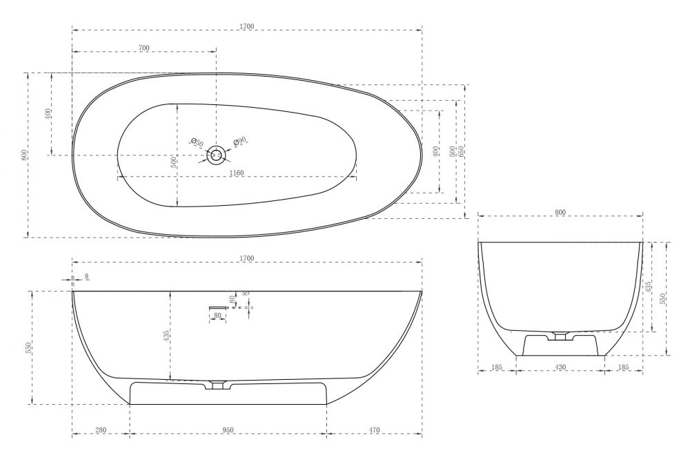 Ванна из искусственного камня ABBER Stein AS9611-1.7 170x80см белый матовый