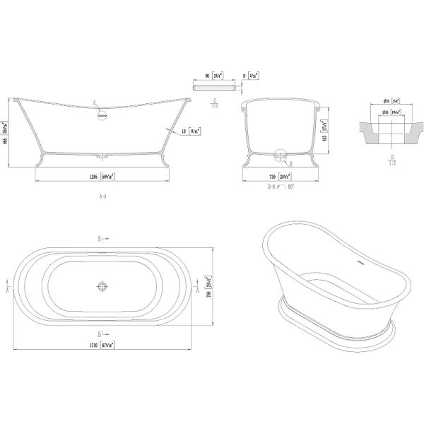 Ванна из искусственного камня Allen Brau Krion 170x75 2.35004.21 Белая матовая без гидромассажа