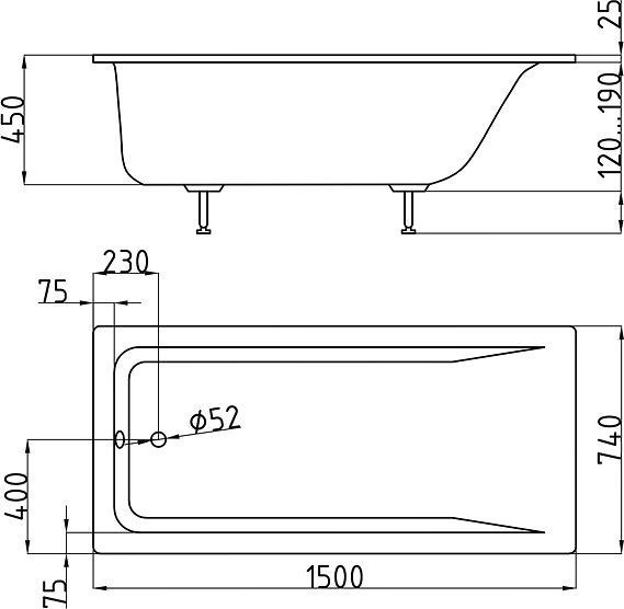 • Габариты (дшг): 150x74x45 см
