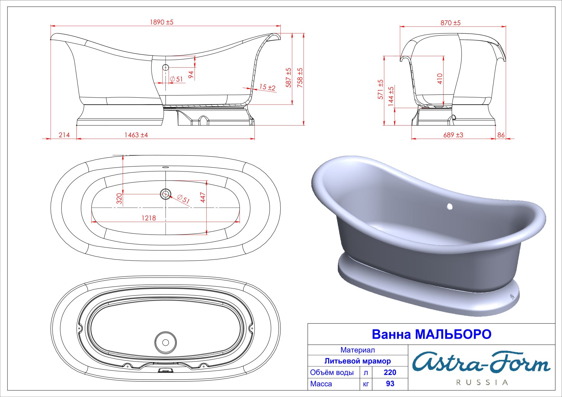 Элегантная ванна «Мальборо» создаст неповторимый изысканный стиль в вашей ванной комнате.