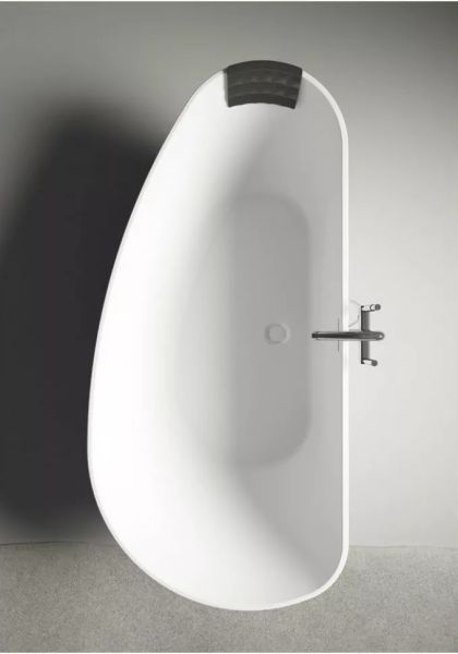 Отдельно стоящая, асимметричная ванна Solid Surface RIHO GRANADA 190 x 90 - композитная ванна, изготовленная из однородной каменной массы - каменная на ощупь, тёплая внутри. Это имитация мрамора: белый матовый цвет ванны при наполнении водой заиграет оригинальной текстурой камня.