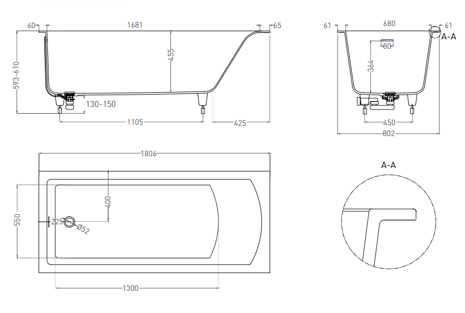 - Регулируемые ножки (ванна с экранами по высоте НЕ регулируется)