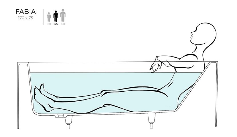 Овальная чаша и строгая геометрия экранов превращают модель FABIA в скульптуру, скромно занимающую место у стены ванной комнаты. Она притягивает взгляды. Внутри визуально цельного объёма скрывается купель с пологой спинкой, обещающей приватность и комфорт.