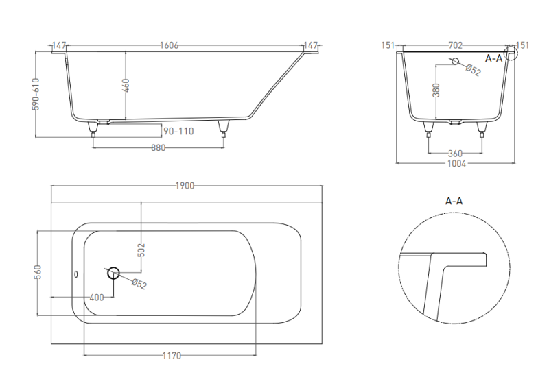 • Регулируемые ножки (ванна с экранами по высоте НЕ регулируется)
