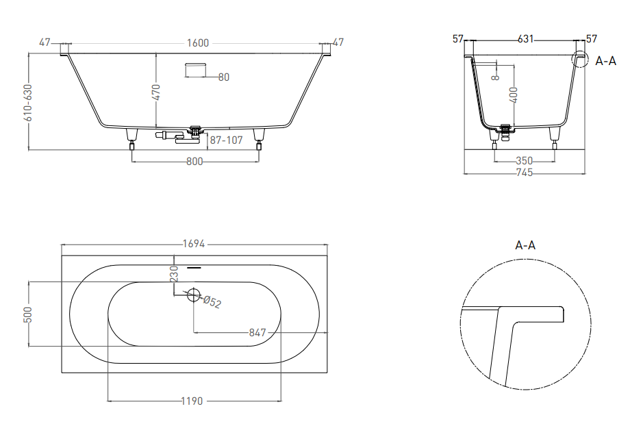По желанию, ванны из материала S-Sense могут быть оснащены любым количеством декоративных экранов для установки у стены или в углу. Экраны, изготовленные из того же материла, что и ванна, придают изделию законченный вид без видимых стыков и соединений.Преимущества