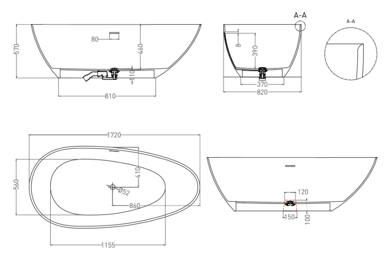 Необычный дизайн благоволит к смелым интерьерным решениям, особенно в сочетании с одноимённной раковиной-компаньоном, не только эффектной, но и практичной благодаря увеличенной глубине. Достаточно компактный размер ванны располагает просторным внутренним объёмом.