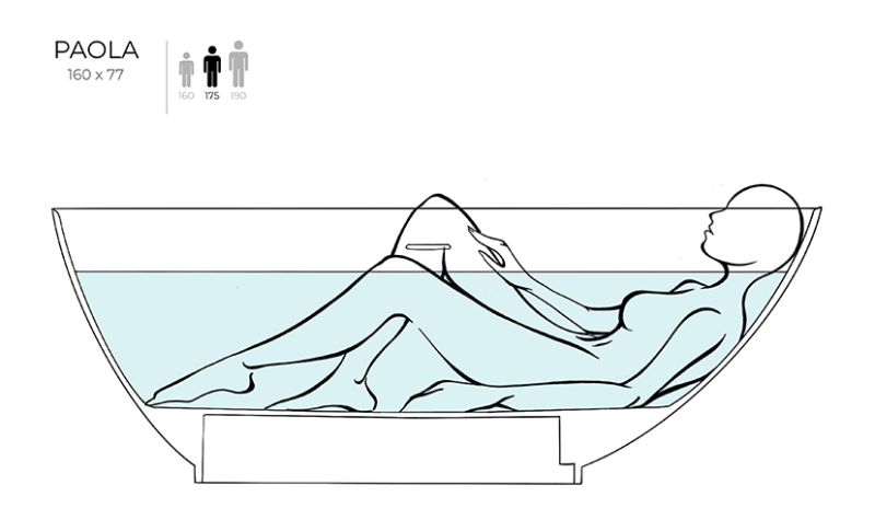 Ванна PAOLA – выбор настоящего гедониста. Нестандартный внешний вид ванны обусловлен её асимметрией — обе стороны достаточно разные, что позволяет расположиться как лёжа, так и сидя, при этом ощущая себя максимально комфортно.Необычный дизайн благоволит к смелым интерьерным решениям, особенно в сочетании с одноимённной раковиной-компаньоном, не только эффектной, но и практичной благодаря увеличенной глубине. Достаточно компактный размер ванны располагает просторным внутренним объёмом.