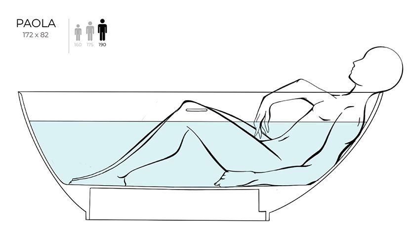 Ванна PAOLA – выбор настоящего гедониста. Нестандартный внешний вид ванны обусловлен её асимметрией — обе стороны достаточно разные, что позволяет расположиться как лёжа, так и сидя, при этом ощущая себя максимально комфортно.