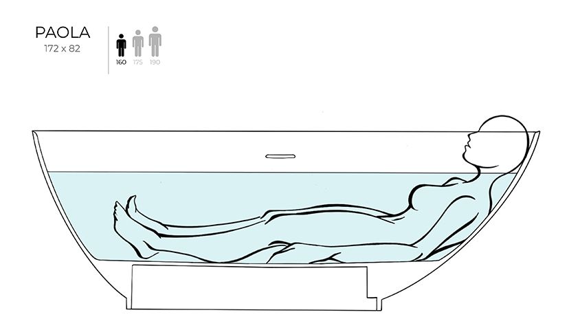 Ванна PAOLA – выбор настоящего гедониста. Нестандартный внешний вид ванны обусловлен её асимметрией — обе стороны достаточно разные, что позволяет расположиться как лёжа, так и сидя, при этом ощущая себя максимально комфортно.