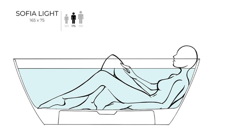 При габаритах 165х75 см SOFIA LIGHT будет идеальным вариантом как для больших, так и для маленьких ванных комнат, где одинаково важны чистые линии и повседневная практичность. Эта модель идеально подойдёт как для расположения у стены, так и для размещения в центре комнаты.