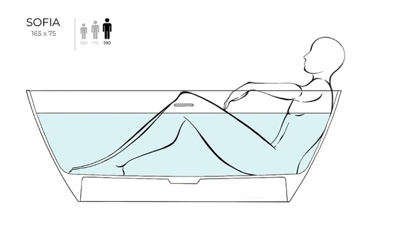 Ванна SOFIA хорошо смотрится как у стены, так и в центре комнаты — особенно в сочетании с удобной раковиной современного силуэта из этой же серии. Преимущества