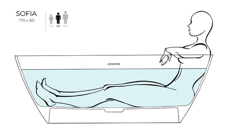 Ванна SOFIA хорошо смотрится как у стены, так и в центре комнаты — особенно в сочетании с удобной раковиной современного силуэта из этой же серии. Преимущества